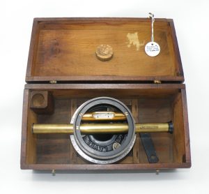 ”Surveying Instrument Makers of Central Canada” – 1993 – Authoritative Paper Published by Acknowledged Experts, Historians, Collectors & Authors; William J. Daniels, OLS & Randall C. Brooks, BSc MSc PhD (Astronomy/Hist. of Science) – Note: This article confirms the ‘Instrument, Case & Tripod Combo Package‘ immediately below is ”EXCEPTIONALLY RARE” when it states (on page 1040): ”ONLY 3 INSTRUMENTS ARE KNOWN BY HEARN & POTTER” (the instrument “combo” below is NOT one of the 3 previously known …….. In 2017 it was found inside the wall of an old Guelph house during renovations & I acquired it for my personal collection, directly from the house owner, who thinking I might have an interest in it, contacted me @ my Land Surveying business known then as BSRD Ltd., Surveyors).