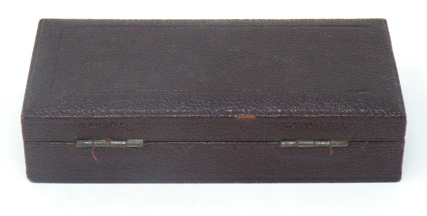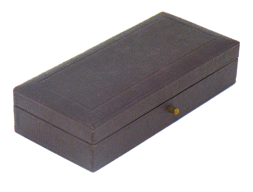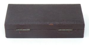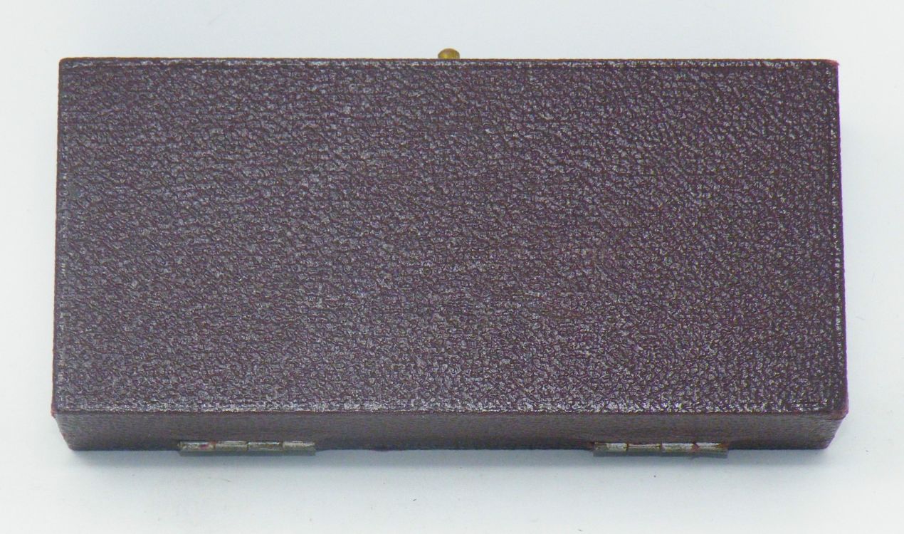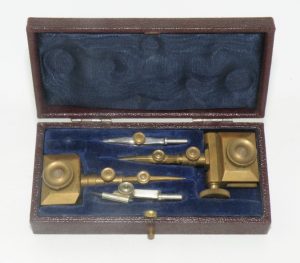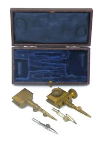 Trammel Points Set (brass) – Unknown Maker c.late1800’s estimated – with fitted burgundy Shagreen (lined in blue velvet & silk) -1cc