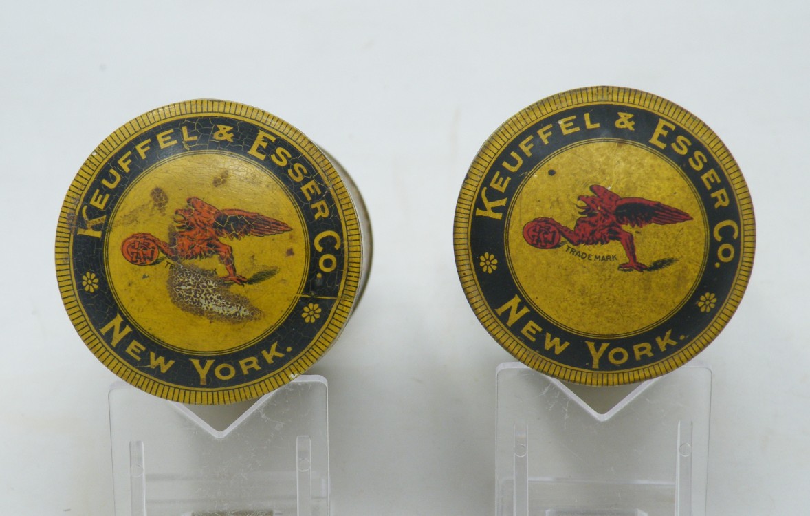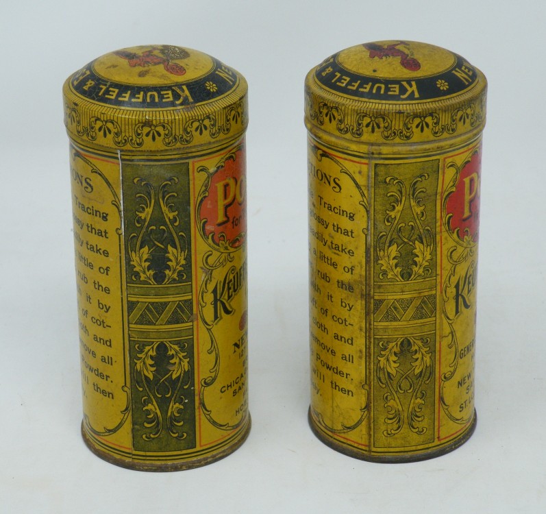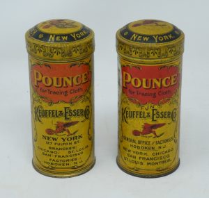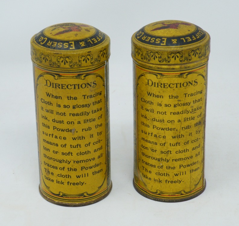 ”Pounce” Drafting Powder”K&E”(c.1913 -c.1936) – 2 mostly full cans – Exceptionally Nice Graphics -1ff