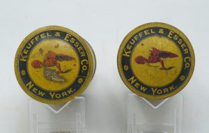 ”Pounce” Drafting Powder – ”K&E” – (c.1913 -c.1936) – 2 mostly full cans – Exceptionally Nice Graphics -1cc