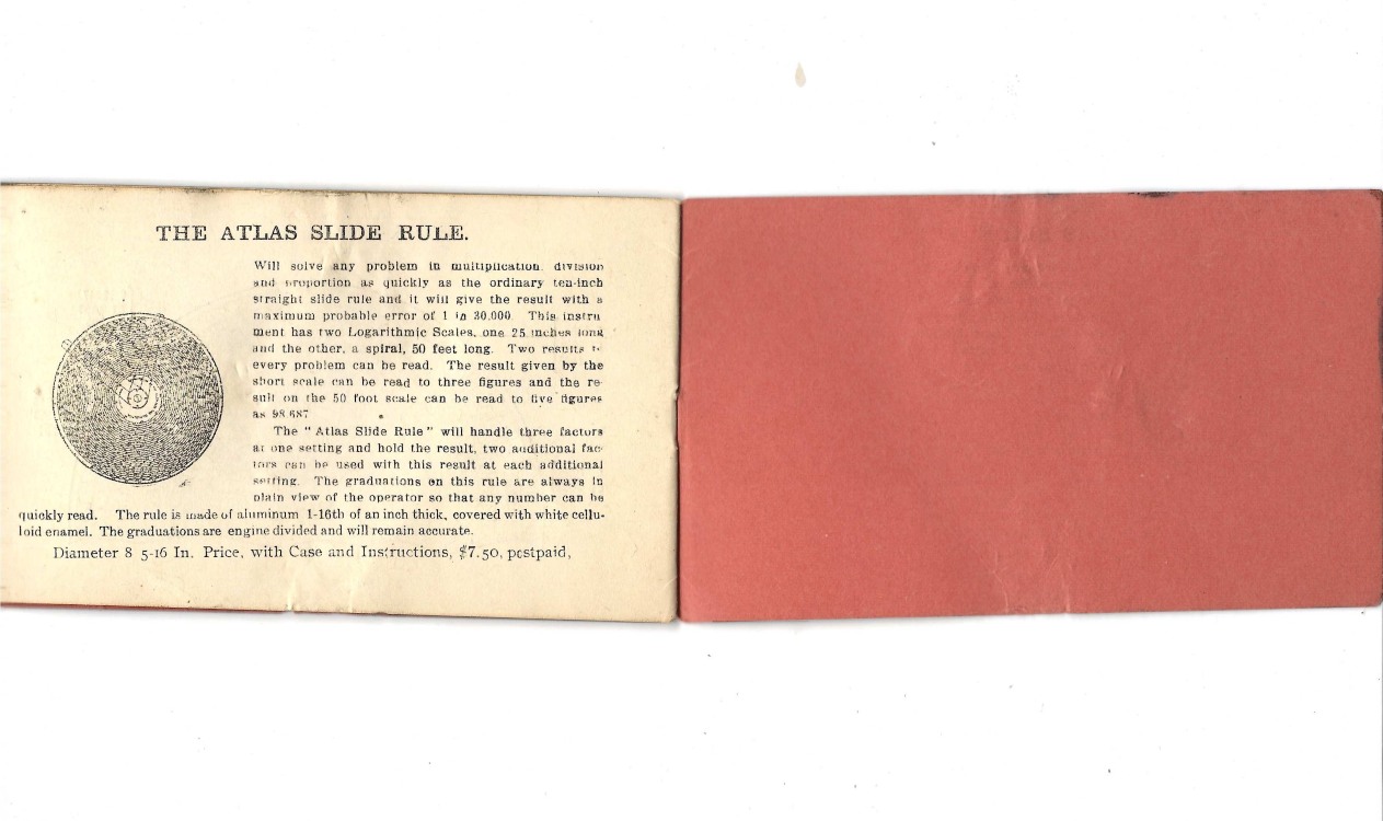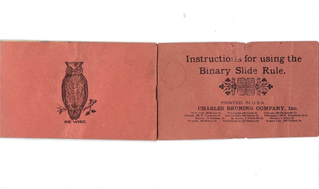 Bruning – ”CIRCULAR SLIDE RULE (aka ‘Gilson Binary’)” 8.31” dia. (c.1940-c.1960) -1ff (Original Instruction Booklet, front & back covers)