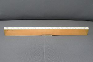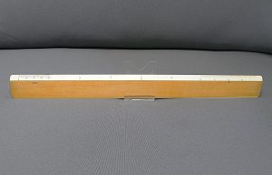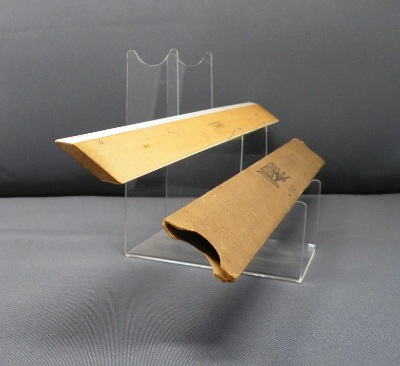 DietzgenFlat Opposite Bevel White Edge Scale #1562 – 12” (Architect’s Style, boxwood with ivory inlay, c.1905-c.1935) + Carboard Case (view showing bevelled end) -1cc