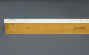 DietzgenFlat Opposite Bevel White Edge Scale #1567 – 12” (Architect’s Style, boxwood with ivory inlay, c.1905-c.1935) + Carboard Case – (back detail) -1fff