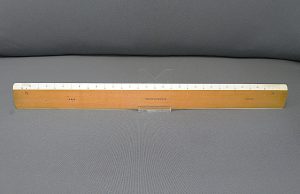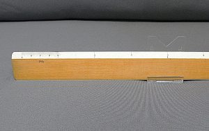 DietzgenFlat Opposite Bevel White Edge Scale #1567 – 12” (Architect’s Style, boxwood with ivory inlay, c.1905-c.1935) + Carboard Case – (view showing bevelled end) -1cc