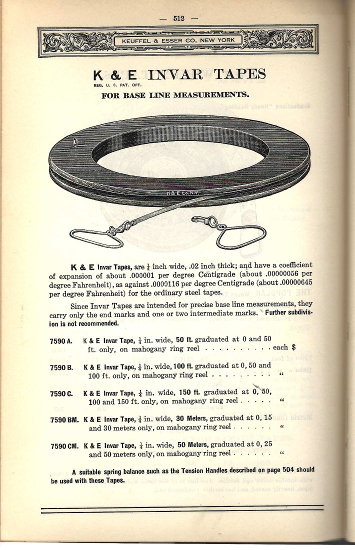 Lufkin – ‘‘Minvar” Baseline Tape c.1949-c.1967 shown in images below, is extremely similar to the above K&E’ example from Pg. 512 of the 1927 K& E Catalog -1z
